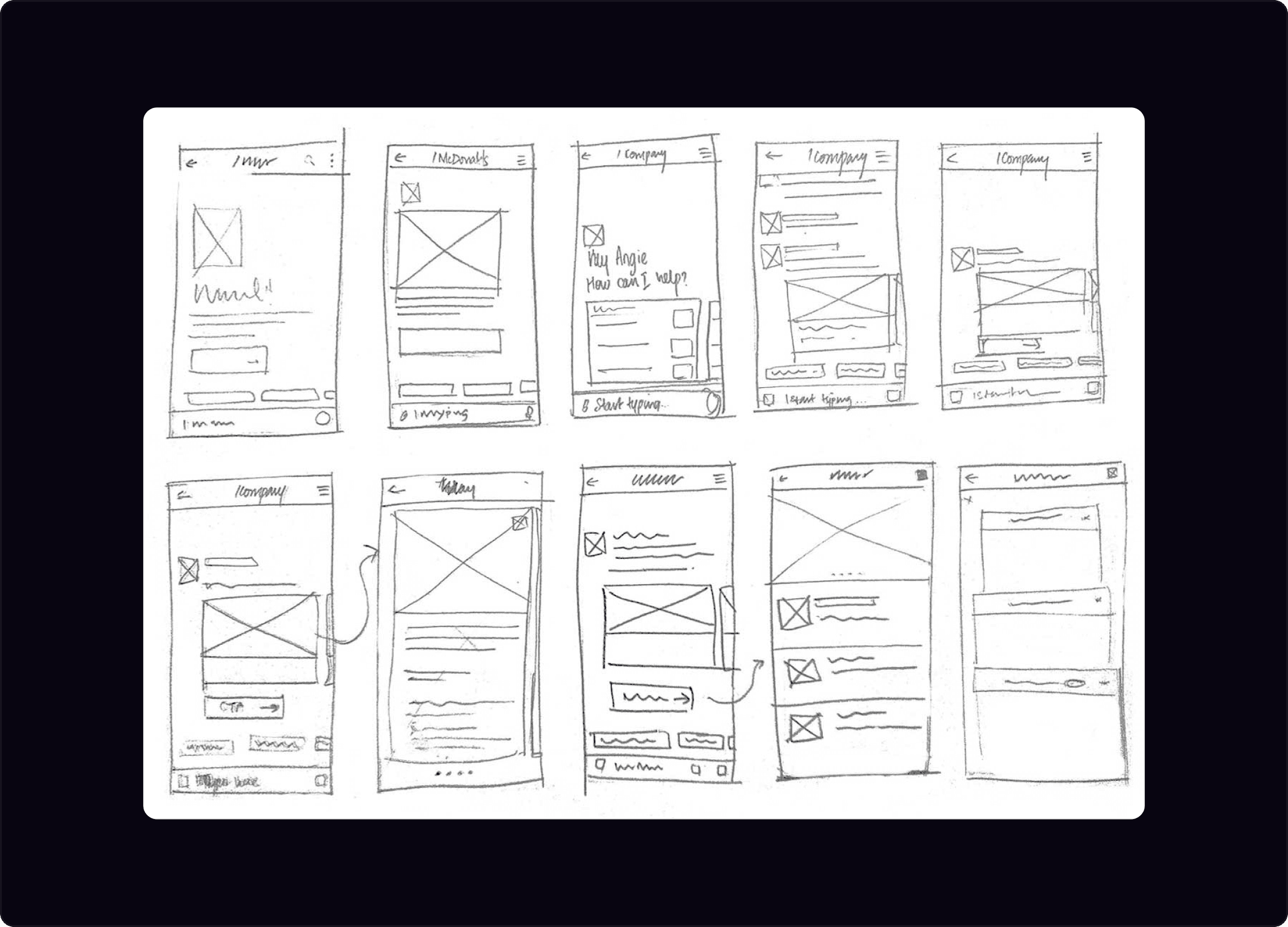 To effectively execute the planned taskflows, I began by outlining the interactions involved. My objective was to create visual representations of various real-world scenarios and applications, including but not limited to tasks such as ordering food, booking movie tickets, and searching for news or information. Additionally, I noticed that brands on most messenger apps lacked vibrancy and personality, so I envisioned incorporating features that would allow them to showcase their unique identity within the app.