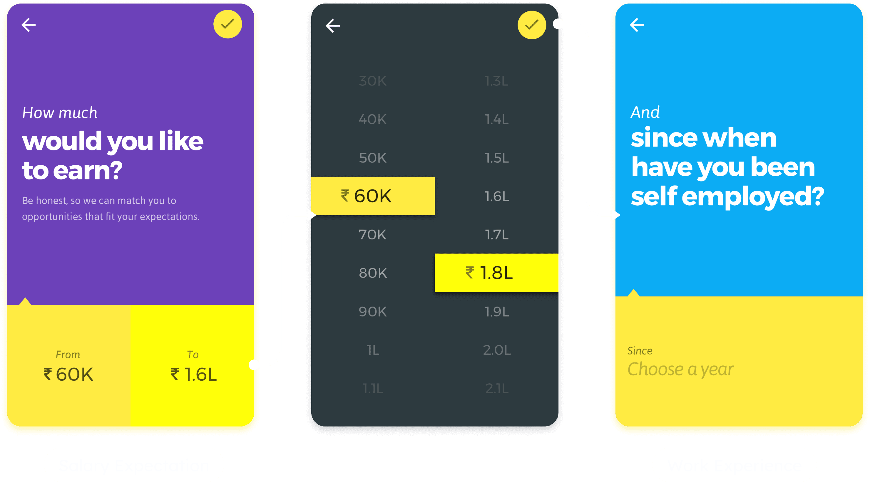 We made creating rich profiles easy by using a conversational onboarding process that made it less tedious for candidates to input their data. This approach got an 88% completion rate and was well-liked by users, helping us gather necessary information quickly.