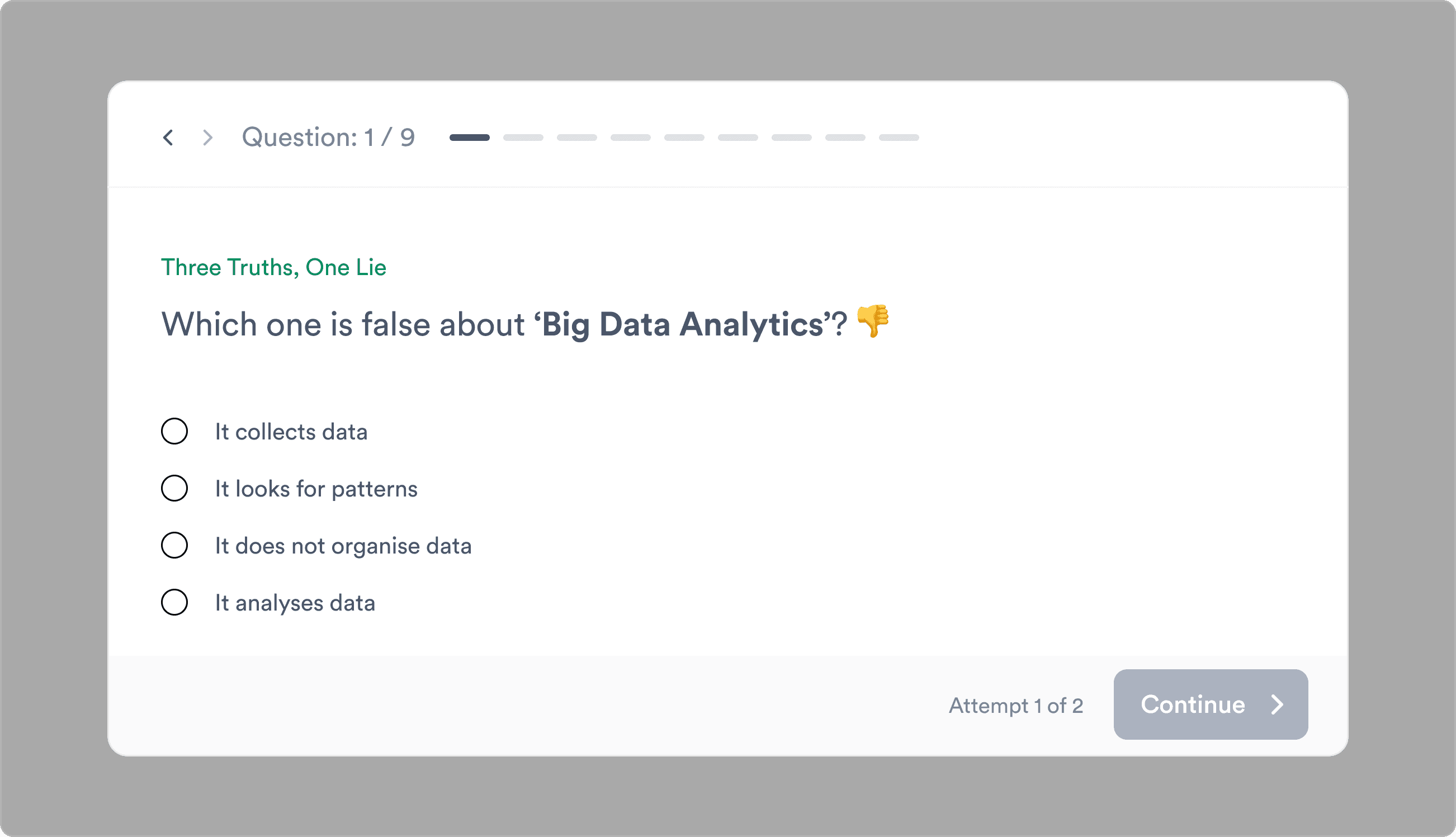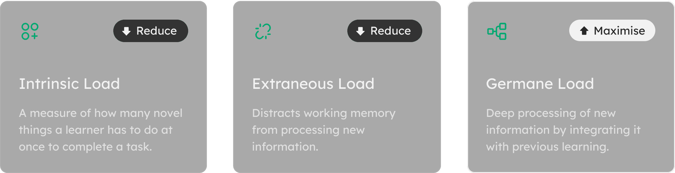 The amount of information that working memory can retain at a time is called cognitive load, and it has a limited capacity. To enhance the learning experience, the challenge was to avoid overloading the working memory with non-learning-related activities. Our hypothesis was that reducing cognitive overload and providing a guided flow would result in increased engagement and better learning outcomes for users.