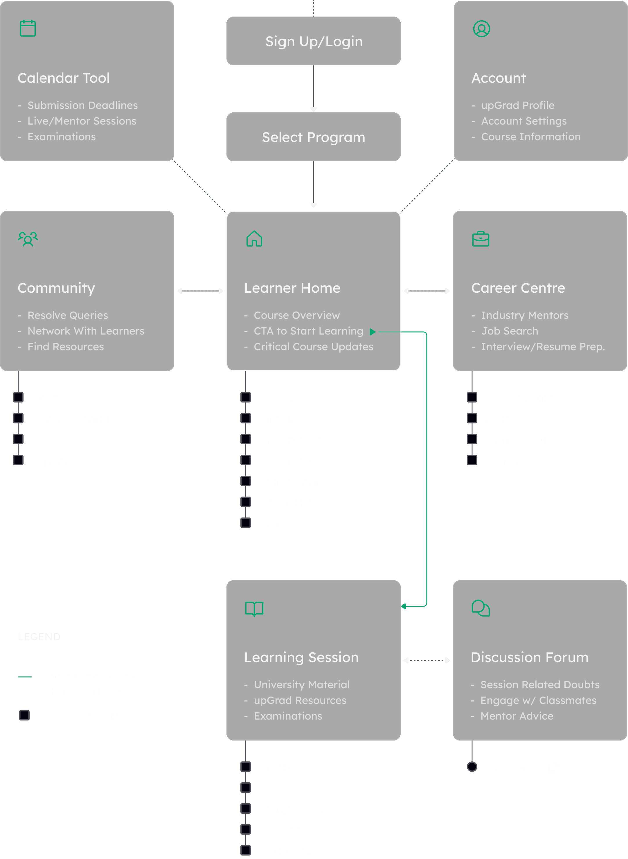 Since its inception in 2015, the product experience remained mostly stagnant, with newer features added onto the existing architecture. As a consequence, unintuitive patterns accumulated over time, impacting both user engagement and adoption rates for our latest initiatives. This was particularly concerning since it led to learners spending less time on the platform, which in turn affected their ability to achieve course-associated goals.