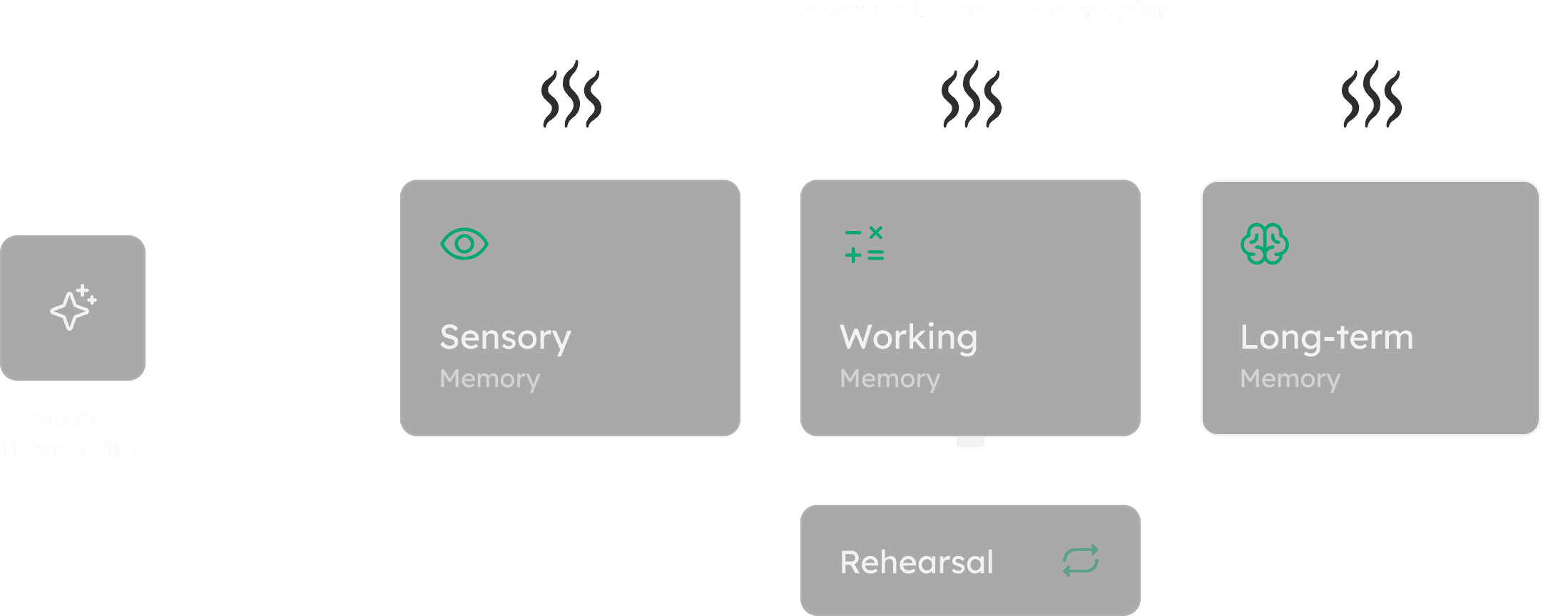 Our UX research focused on the process of transferring novel information from sensory and working memory to long-term memory for better retention. The study found that the use of working examples and rehearsal significantly aids this transfer, leading to improved comprehension and long-term retention of learned concepts for users.